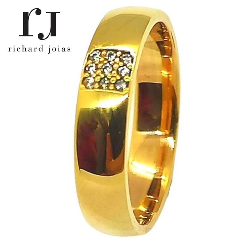 ALIANÇA DE MOEDA 4,3MM ANATÔMICA ABAULADA C/09 PEDRAS
