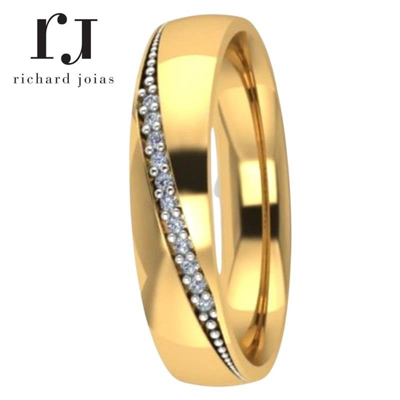 ALIANÇA DE MOEDA 4,3MM ANATÔMICA ABAULADA C/11 PEDRAS