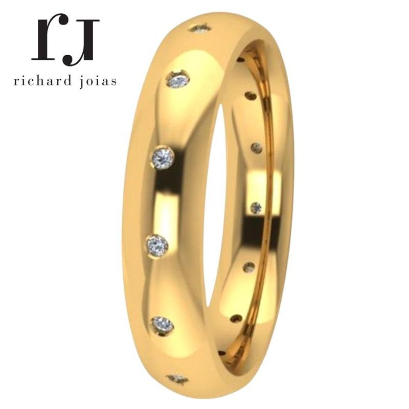 ALIANÇA DE MOEDA 4,3MM ANATÔMICA ABAULADA C/12 PEDRAS