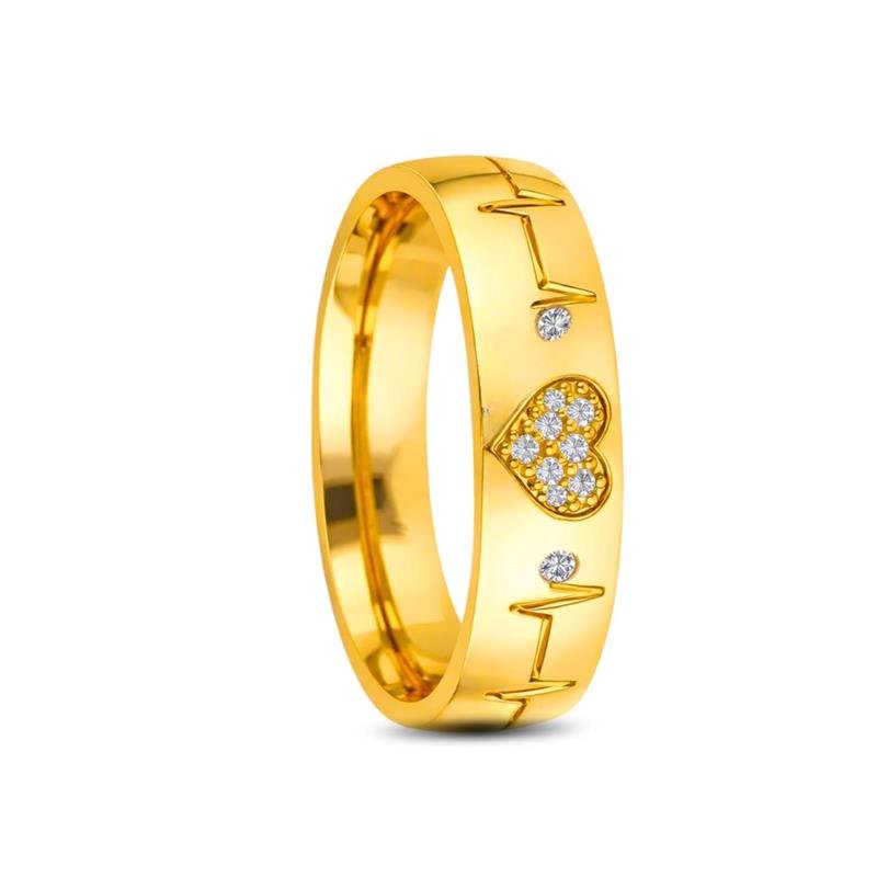 ALIANÇA DE MOEDA 6,0MM ANATÔMICA ABAULADA C/CORAÇÃO CRAVEJADO E 10 PEDRAS