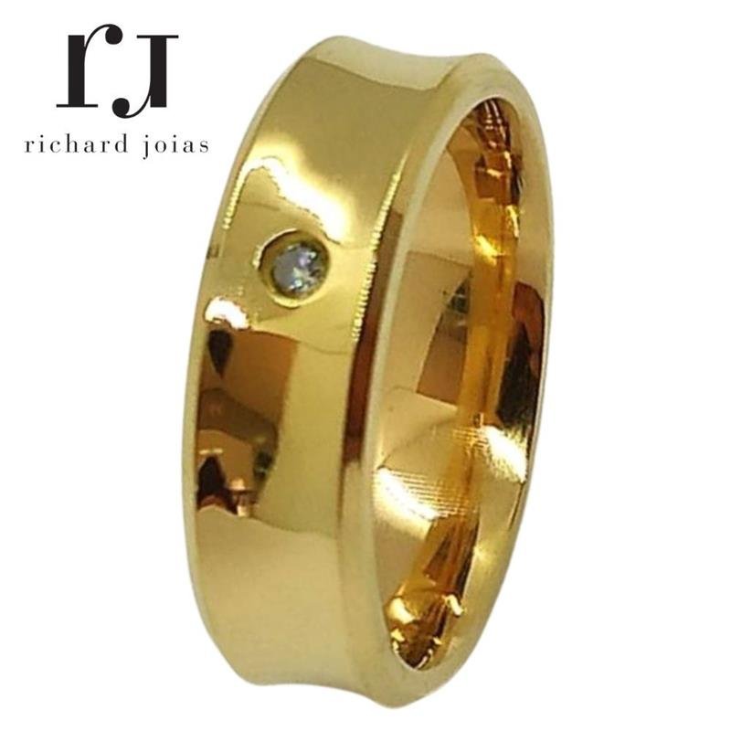 ALIANÇA DE MOEDA 6,0MM ANATÔMICA CONCAVA CHANFRADA C/01 PEDRA