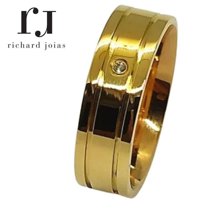 ALIANÇA DE MOEDA 6,0MM QUADRADA C/01 PEDRA E 02 FRISO 0,50