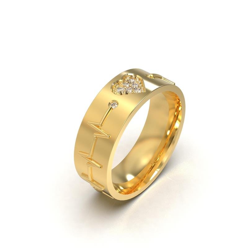 ALIANÇA DE MOEDA 6,0MM QUADRADA C/BATIMENTOS CORAÇÃO CRAVEJADO E 8 PEDRAS