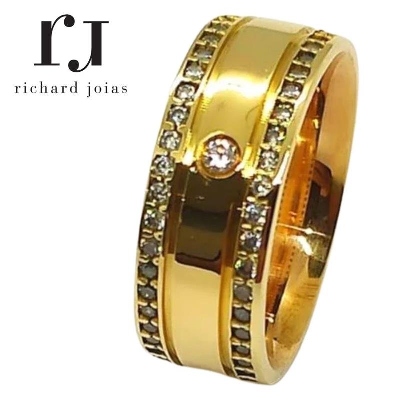 ALIANÇA DE MOEDA 8,0MM *ANATOMICA QUADRADA C/43 PEDRAS