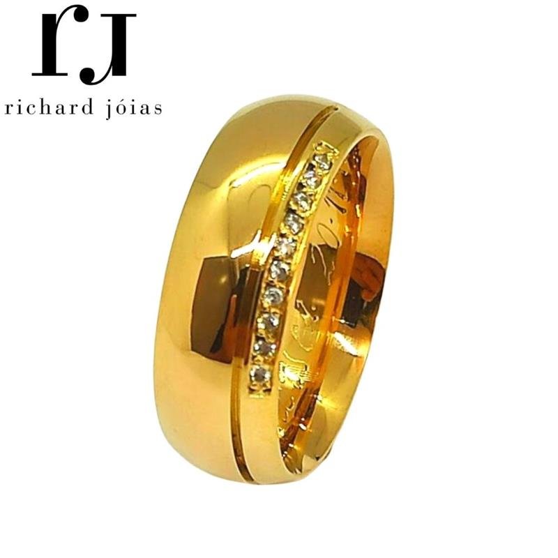 ALIANÇA DE MOEDA 8,0MM ANATÔMICA ABAULADA C/ FRISO LATERAL E10 PEDRAS