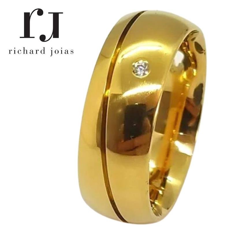 ALIANÇA DE MOEDA 8,0MM ANATÔMICA ABAULADA C/01 PEDRA E 01 FRISO 0,50 TORCIDO