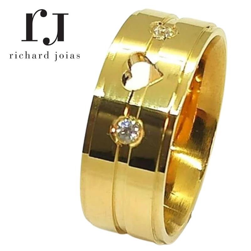 ALIANÇA DE MOEDA 8,0MM ANATÔMICA QUADRADA C/ CORAÇÃO VAZADO FRISO DE 1MM 2 PEDRAS E LATERAL REBAIXADO