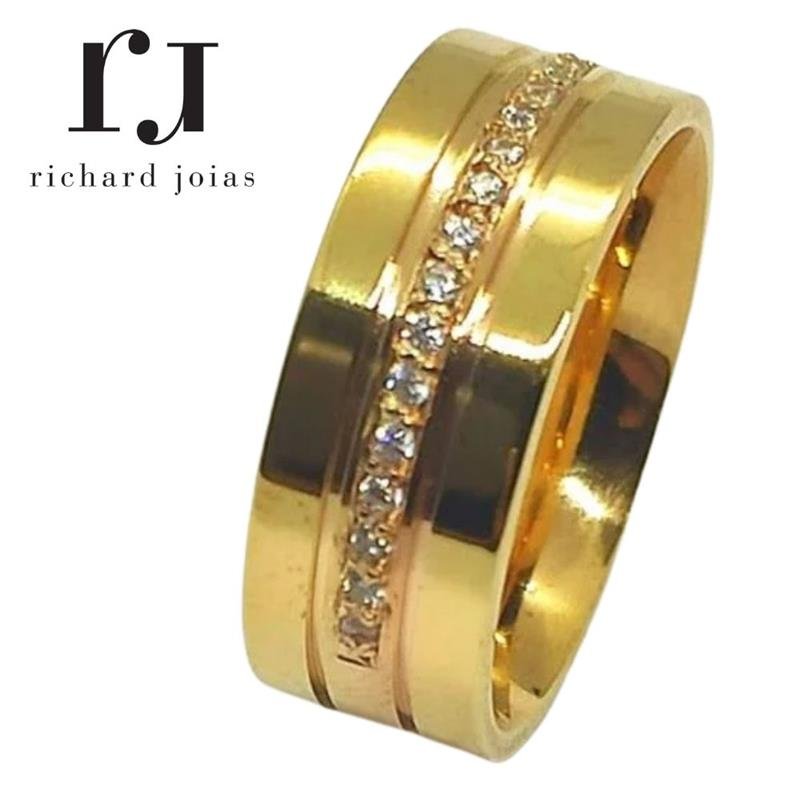 ALIANÇA DE MOEDA 8,0MM ANATÔMICA QUADRADA C/15 PEDRAS E 2 FRISO 0,50
