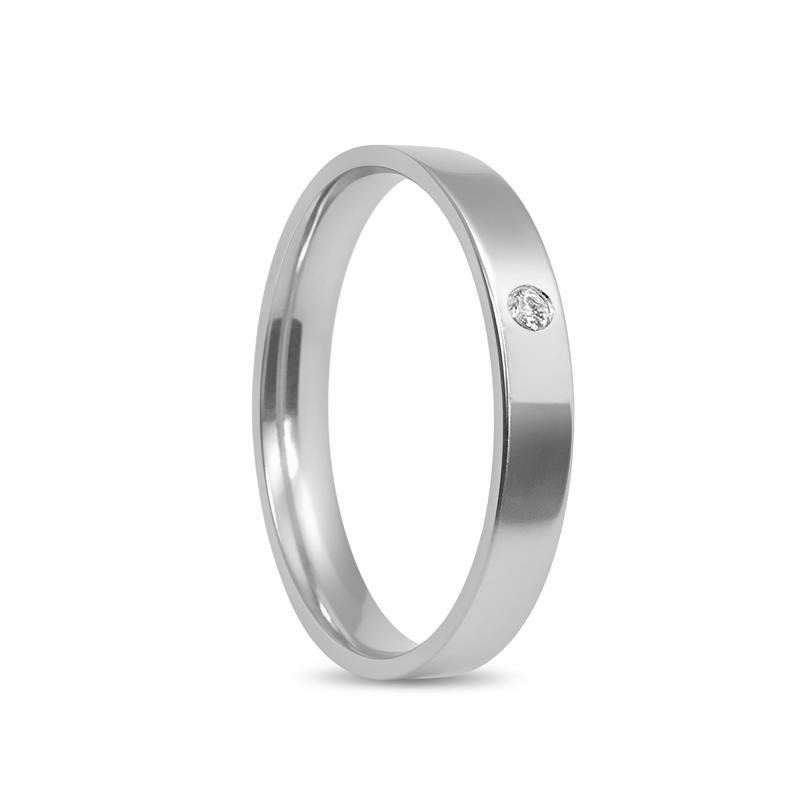 ALIANÇA DE PRATA 3,0MM ANATÔMICA QUADRADA C/01 PEDRA
