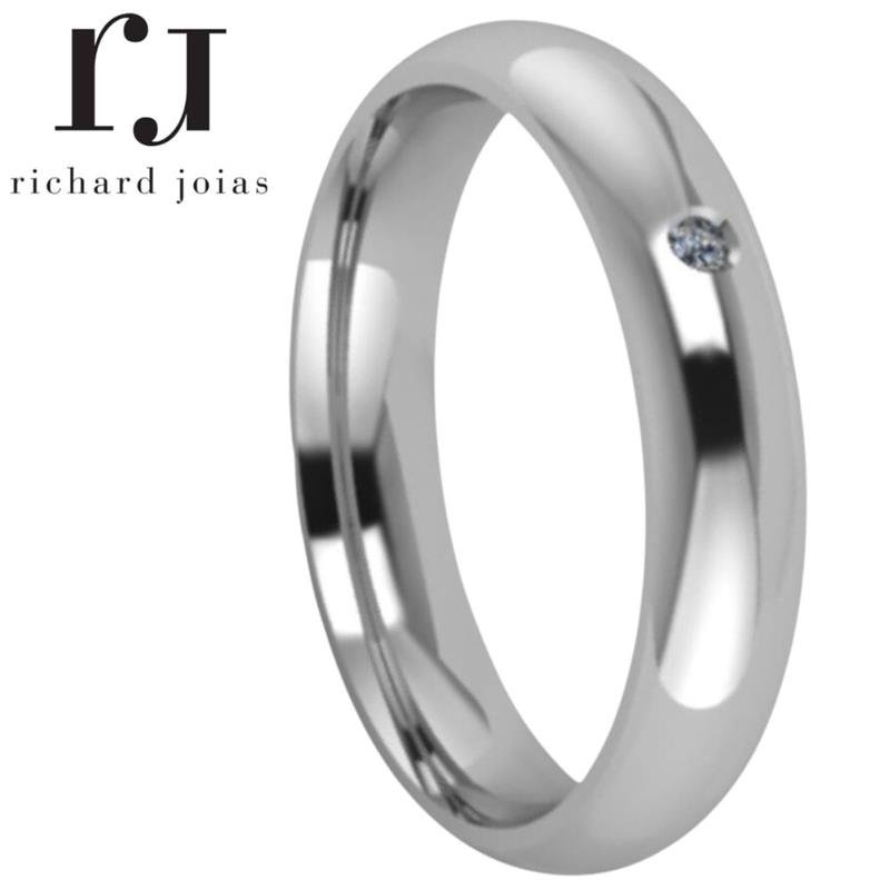 ALIANÇA DE PRATA 4,0MM ANATÔMICA ABAULADA C/ 01 PEDRA