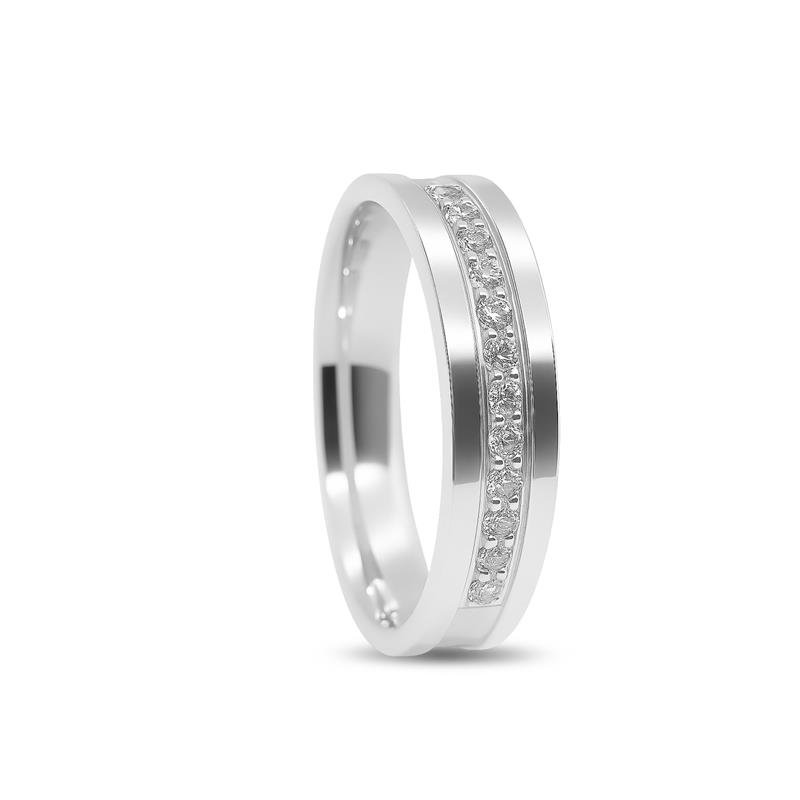 ALIANÇA DE PRATA 4,3MM ANATÔMICA QUADRADA C/12 PEDRAS E O CENTRO REBAIXADO