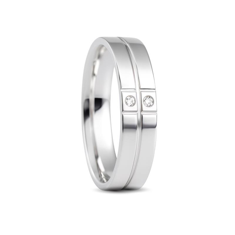 ALIANÇA DE PRATA 4,3MM ANATÔMICA QUADRADA FOSCA C/02 PEDRAS