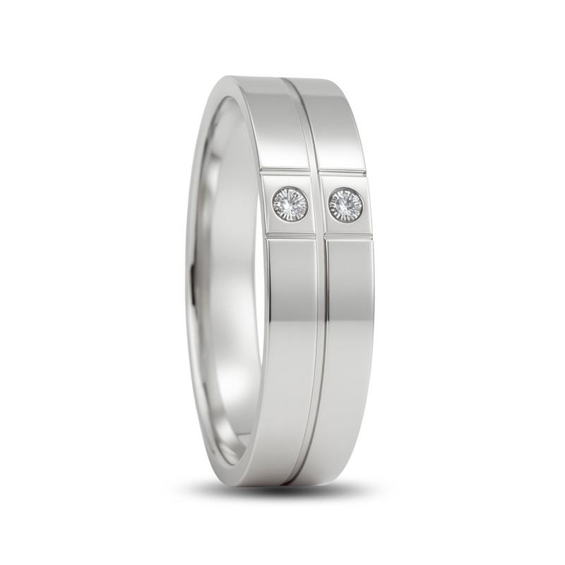 ALIANÇA DE PRATA 6,0M QUADRADA C/02 PEDRAS E 01 FRISO CENTRAL
