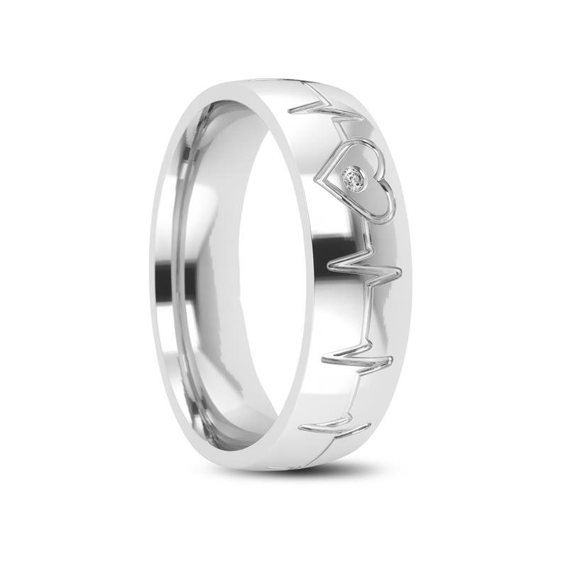 ALIANÇA DE PRATA 6,0MM ABAULADA C/BATIMENTO CORAÇÃO E 01 PEDRA