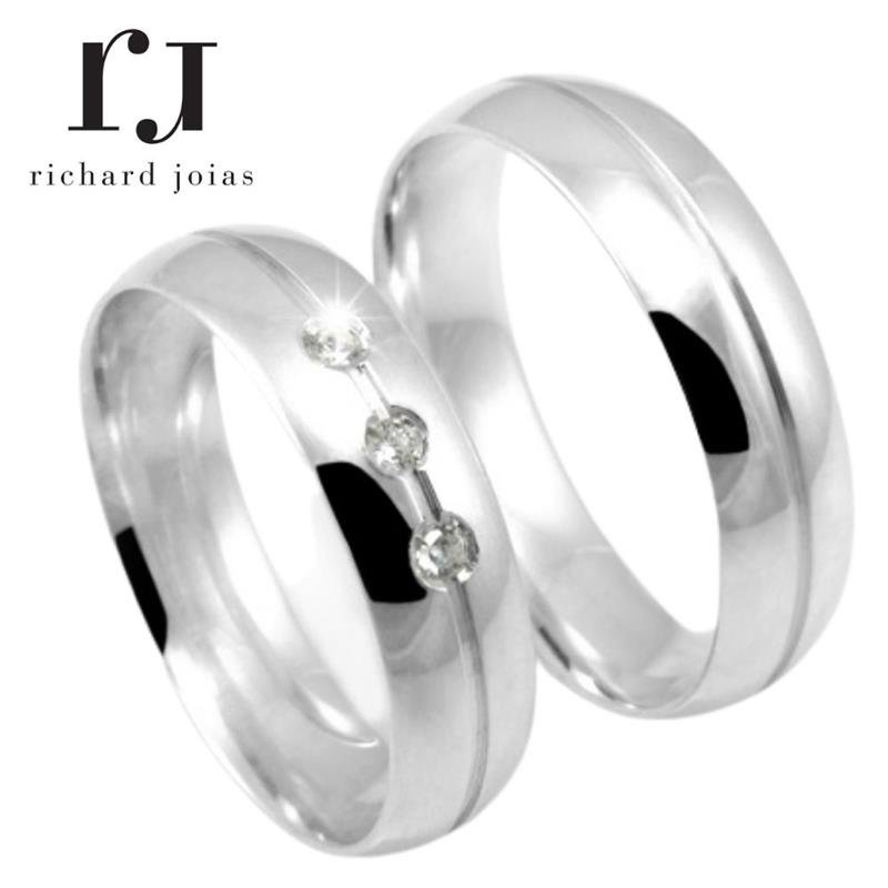 ALIANÇA DE PRATA 6,0MM ANATÔMICA ABAULADA C/FRISO DE 1,0MM E 03 PEDRAS