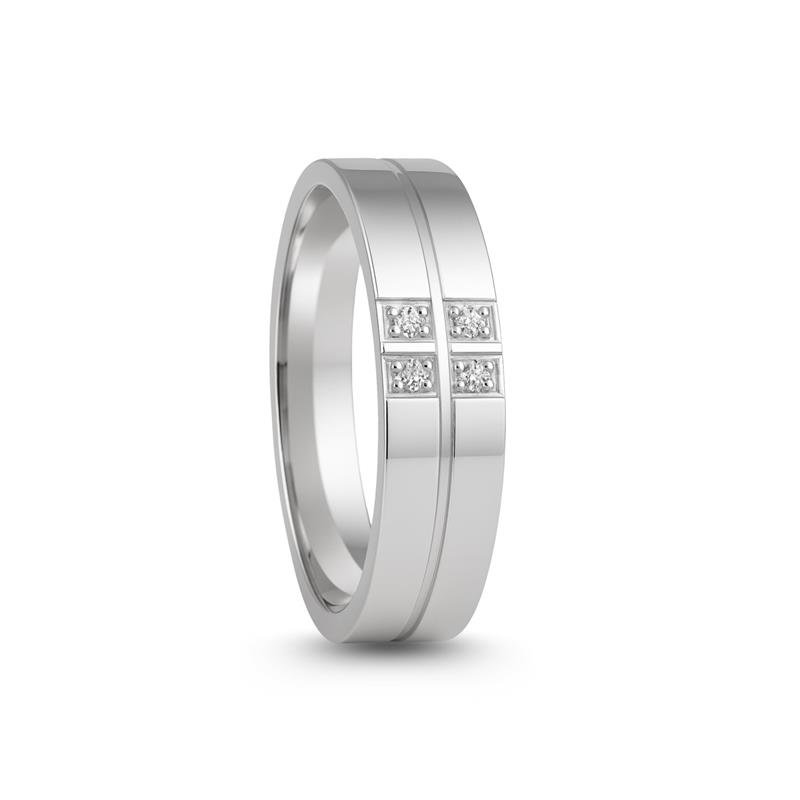 ALIANÇA DE PRATA 6,0MM ANTÔMICA QUADRADA C/ FRISO E 04 PEDRAS