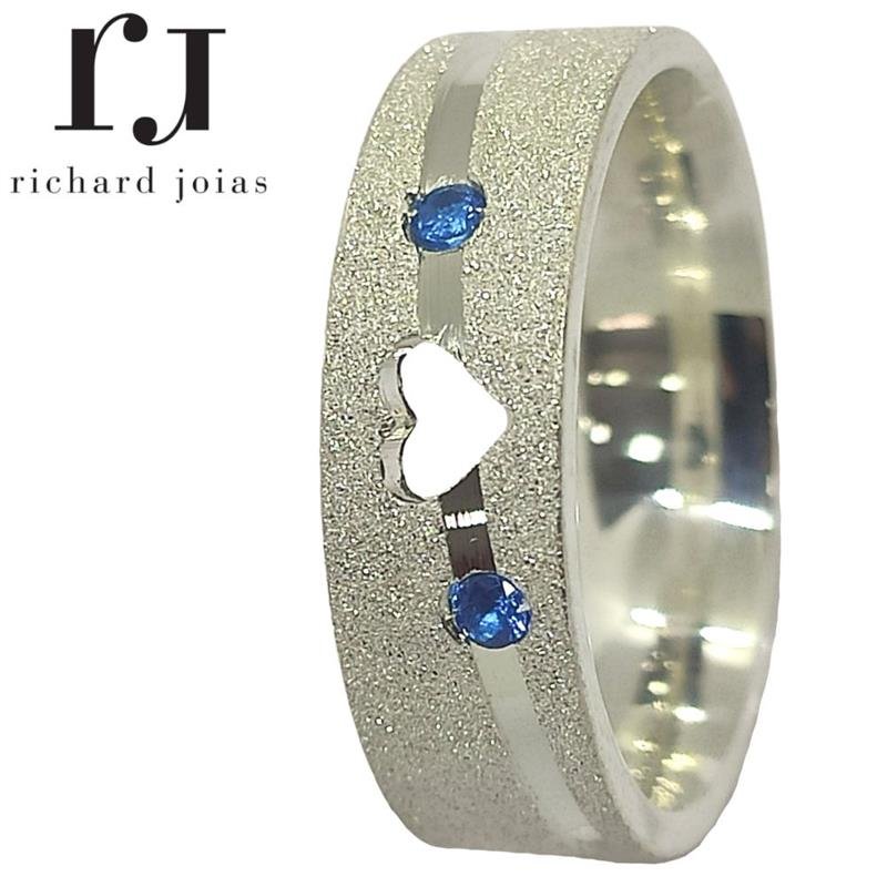 ALIANÇA DE PRATA 6,0MM QUADRADA DIAMANTADA C/01 FRISO TORCIDO CORAÇÃO VAZADO E 02 PEDRAS