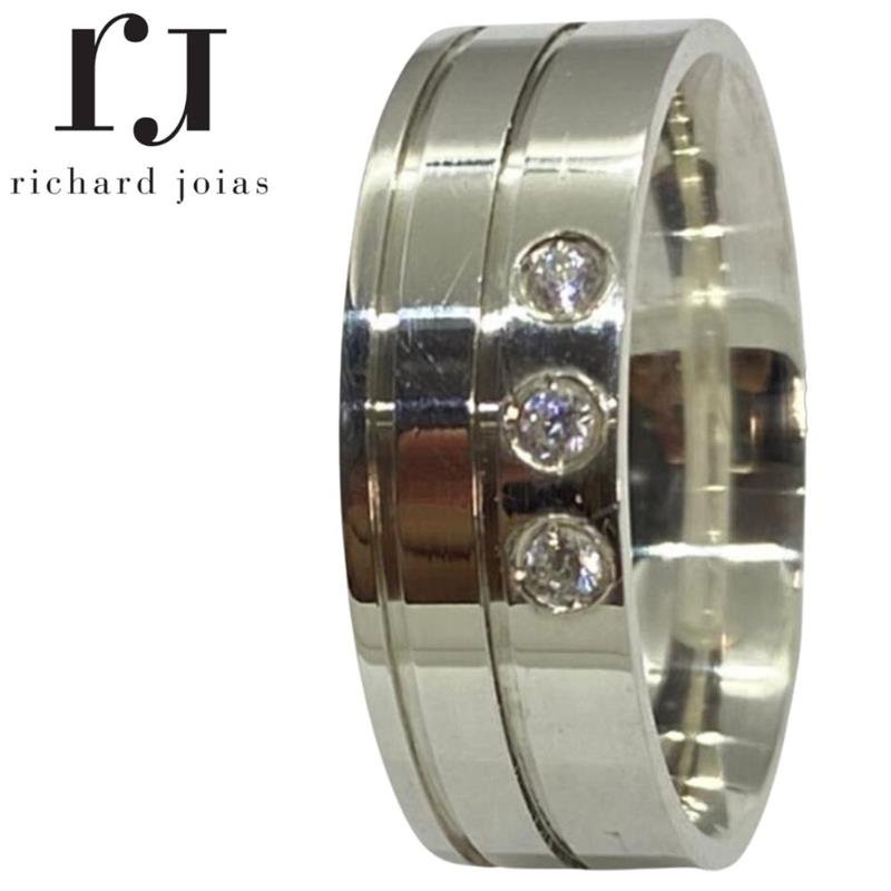 ALIANÇA DE PRATA 7,0MM ANATÔMICA QUADRADA C/02 FRISO E 03 PEDRAS