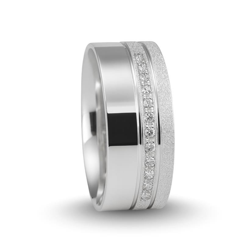 ALIANÇA DE PRATA 8,0MM ANATÔMICA QUADRADA DIAMANTADA C/15 PEDRAS E 2 FRISOS 0,50