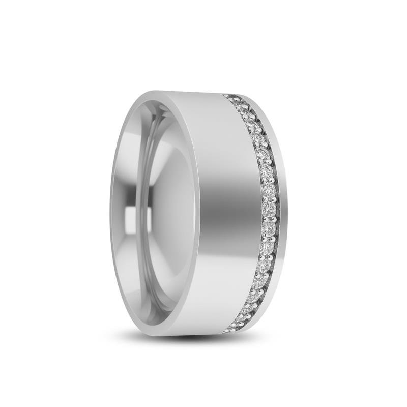 ALIANÇA DE PRATA 8,0MM QUADRADA C/ 20 PEDRAS