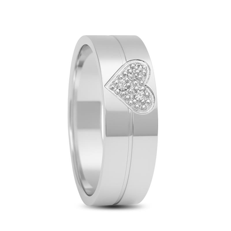ALIANÇA DE PRATA 8,0MM QUADRADA C/INTERNO RETO CORAÇÃO CRAVEJADO C/03 PEDRAS E 01 FRISO 0,50