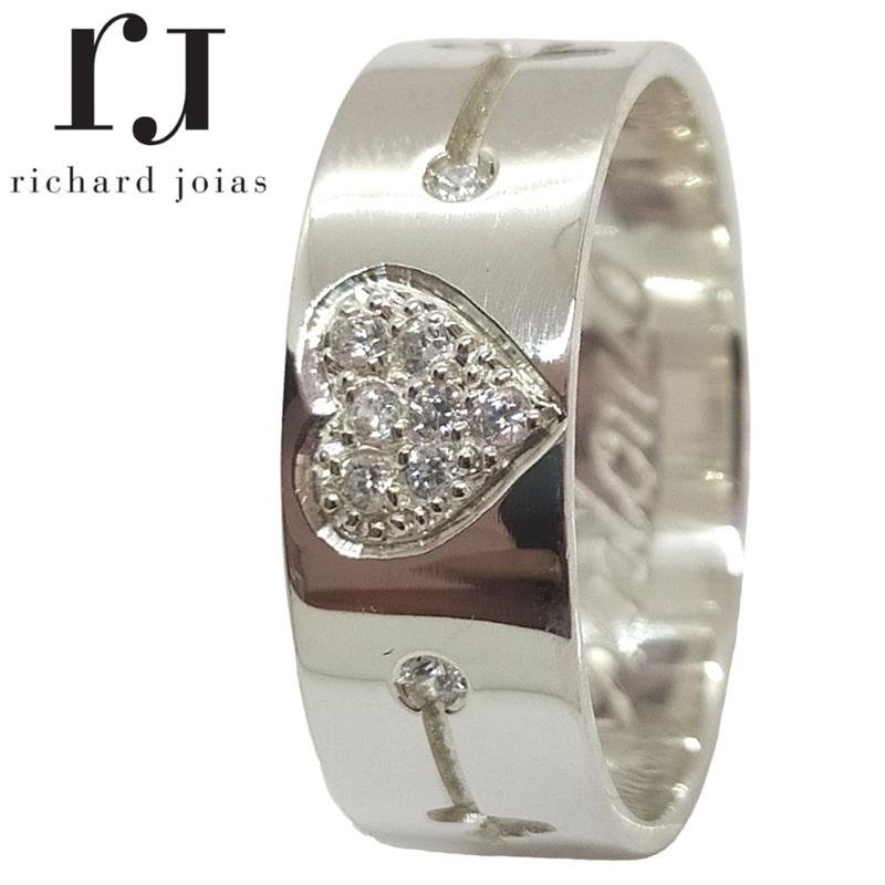 ALIANÇA DE PRATA 8,0MM QUADRADA RETA C/CORAÇÃO CRAVEJADO E BATIMENTO CARDIACO