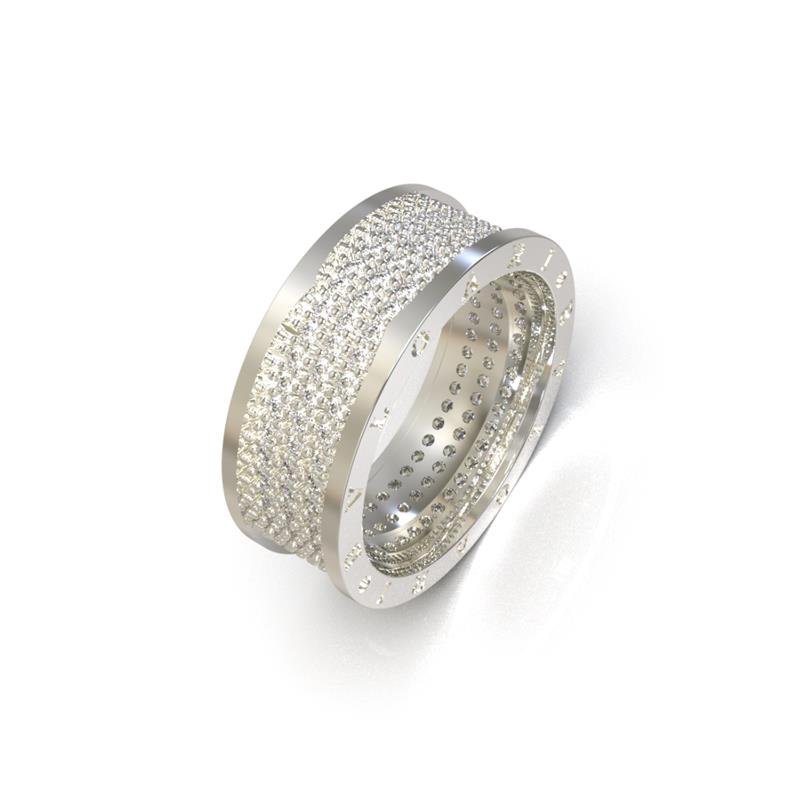 ALIANÇA DE PRATA 9,0MM ANATÔMICA QUADRADA BVL C/ ESCRITA NAS LATERIAS E 132 PEDRAS
