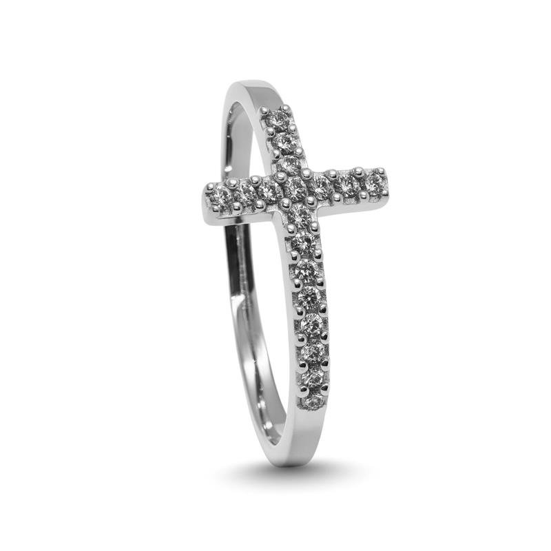 ANEL DE PRATA CRUZ CRAVEJADO C/18 PEDRAS